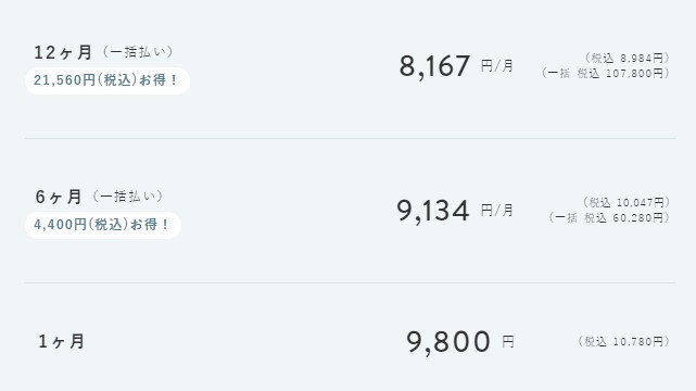 また、シーライクスでは、入会金とは別に月会費もかかります。