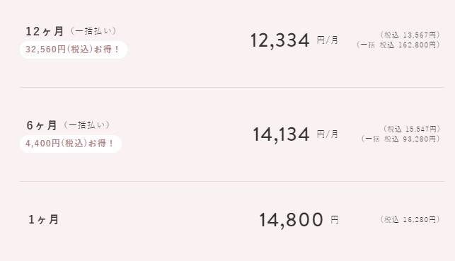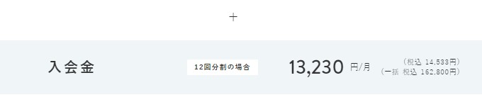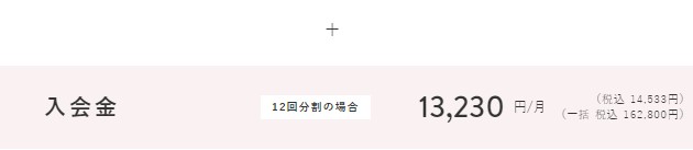 上記の表にある入会金の13,230円は、12回分割の場合です。